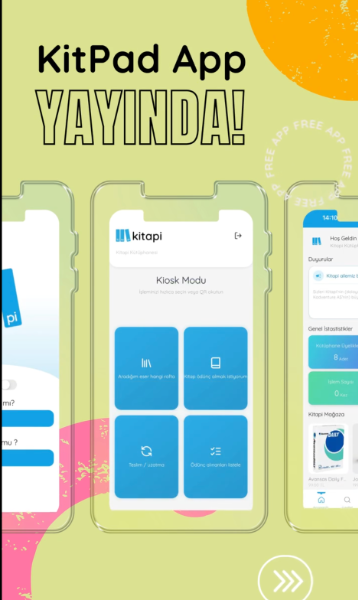 Uzun zamandır yolunu gözlediğimiz yeni Android uygulamamız KitPad çok şükür Store'da yerini aldı. iOS uygulaması da tamamlandı ve Apple'dan onay bekliyor. İnşallah o da kısa bir süre sonra yayında olacak. Yeni KitPad uygulaması daha önceki kiosk uygulamasından farklı olarak artık kişisel olarak da kullanabileceğiniz bir uygulama. Yani kullanıcı olarak giriş yapıp hem kendi kütüphanenizde hem bütün Kitapi kütüphanelerinde kitap arayabilir, buradaki sosyal medyamızda paylaşınları okuyabilir (şimdilik okuması var, yazması yok), birden fazla kütüphaneniz varsa onlar arasında rahatlıkla geçiş yapabilirsiniz. Yeni uygulamamızın Kiosk modu da var tabi. Giriş yaptıktan sonra Kiosk moduna geçirdiğinizde artık kütüphanenizin kiosku olarak çalışır. Üyeleriniz kendi başlarına kitap Devamı