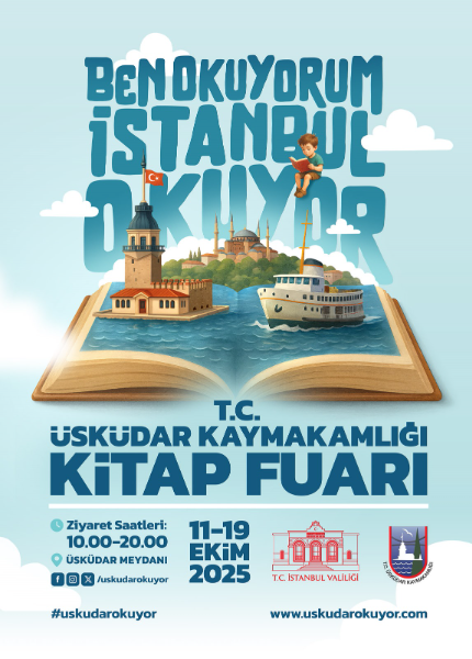 “Ben okuyorum, İstanbul okuyor! ” sloganıyla düzenlenen Üsküdar Kaymakamlığı Kitap Fuarı, 11-19 Ekim 2025 tarihleri arasında Üsküdar Meydanı’nda sizleri bekliyor! 📍 Yer: Üsküdar Meydanı